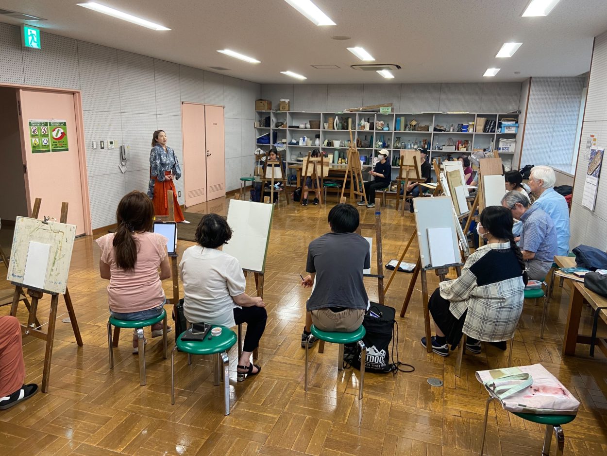 こちらには16畳のリビングがあり、これを活用できないかとの思いから知り合いの画家さん達に相談をしたところ、和服のモデルが少ないとの事でご提案を戴きました。